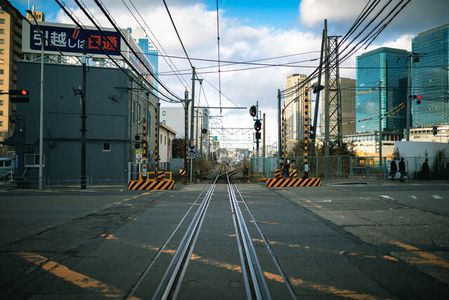踏切の遮断機のそばで電車が通るのを今か今かと待ってた。