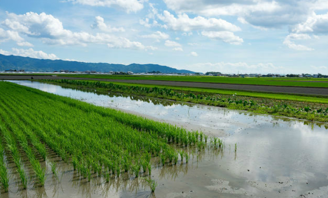 米どころで、家の前には広大な水田が広がり、