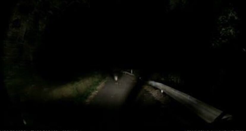 真夜中に栃木県の国道を走っていたとき、路肩に立つ警官が赤く光る警棒をかざしているのが見えた。